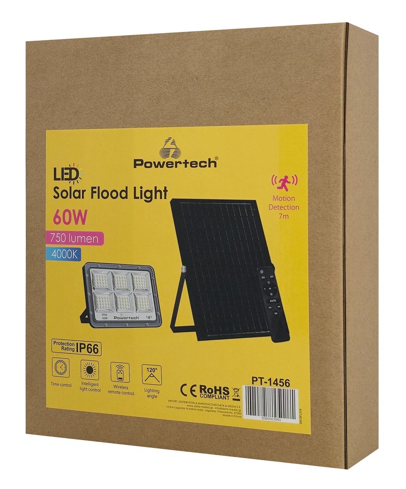 LED ηλιακός προβολέας με τηλεχειριστήριο, 60W, 4000K, 750lm, IP66